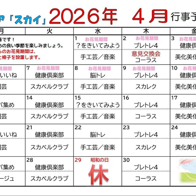 デイケア「スカイ」では自分のしたい活動やメンバー様の希望に応じて活動活動内容を決定しています。