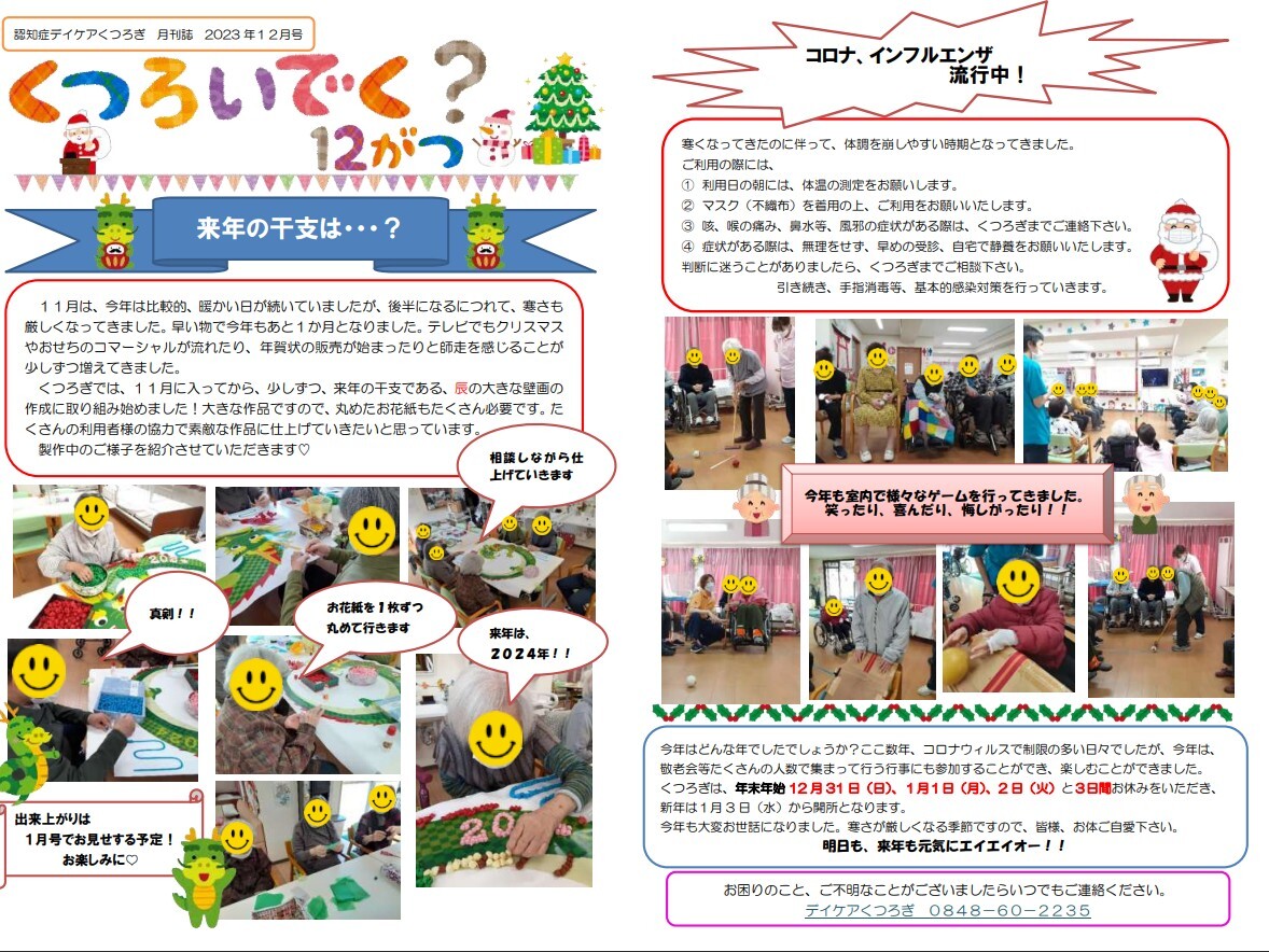 認知症デイケア「くつろぎ」月刊誌12月号