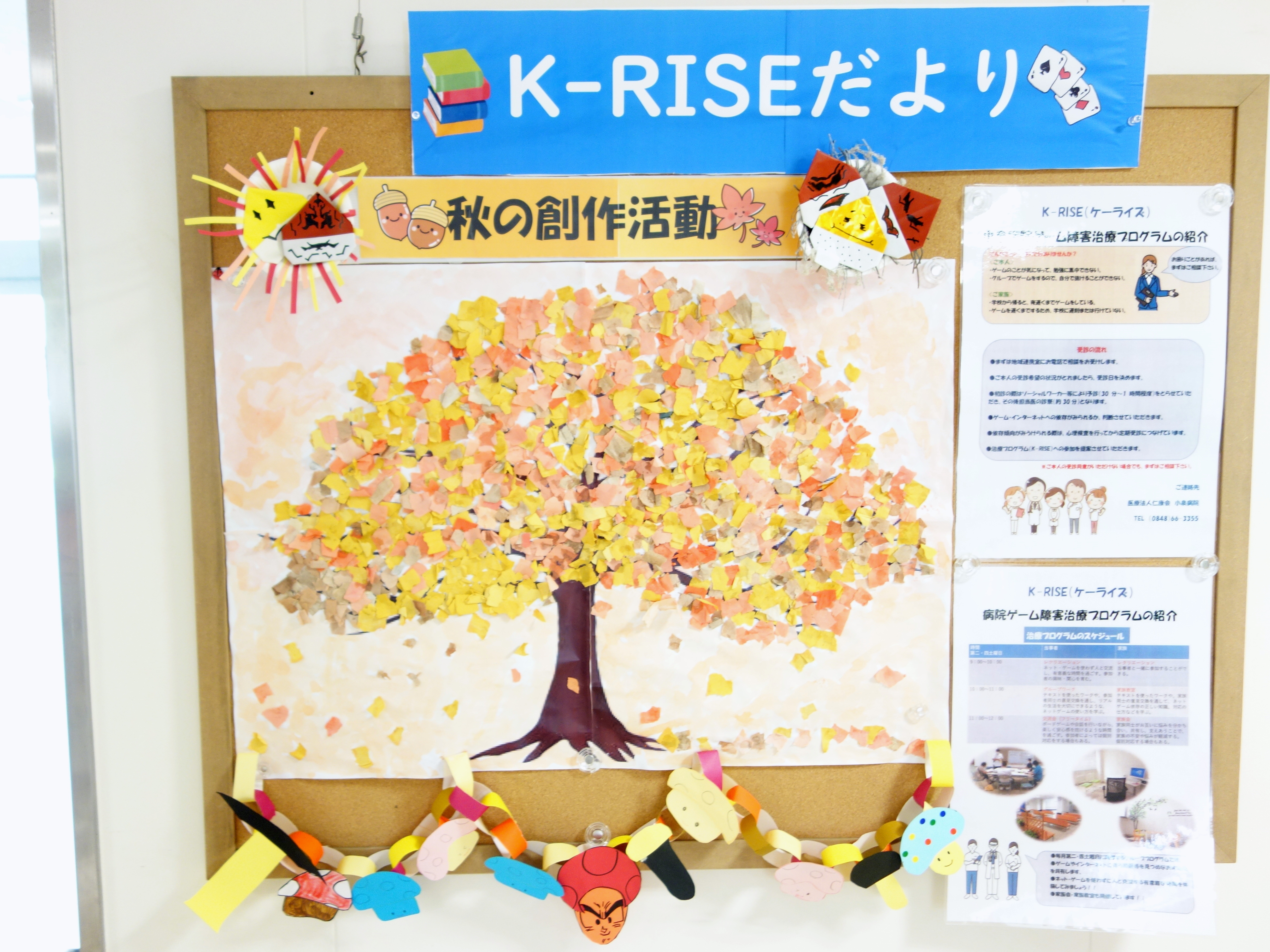 当院のインターネット・ゲーム依存の集団治療プログラムK-RISE(ケーライズ)にて『秋の創作活動』を行いました!参加された方々とスタッフで協力しながら創作を行い、とてもいい作品が出来上がりました!今後もK-RISEでの活動の様子を定期的にお知らせいたします。気になる方がおられましたら、ゲーム依存外来のページをご覧いただければと思います。