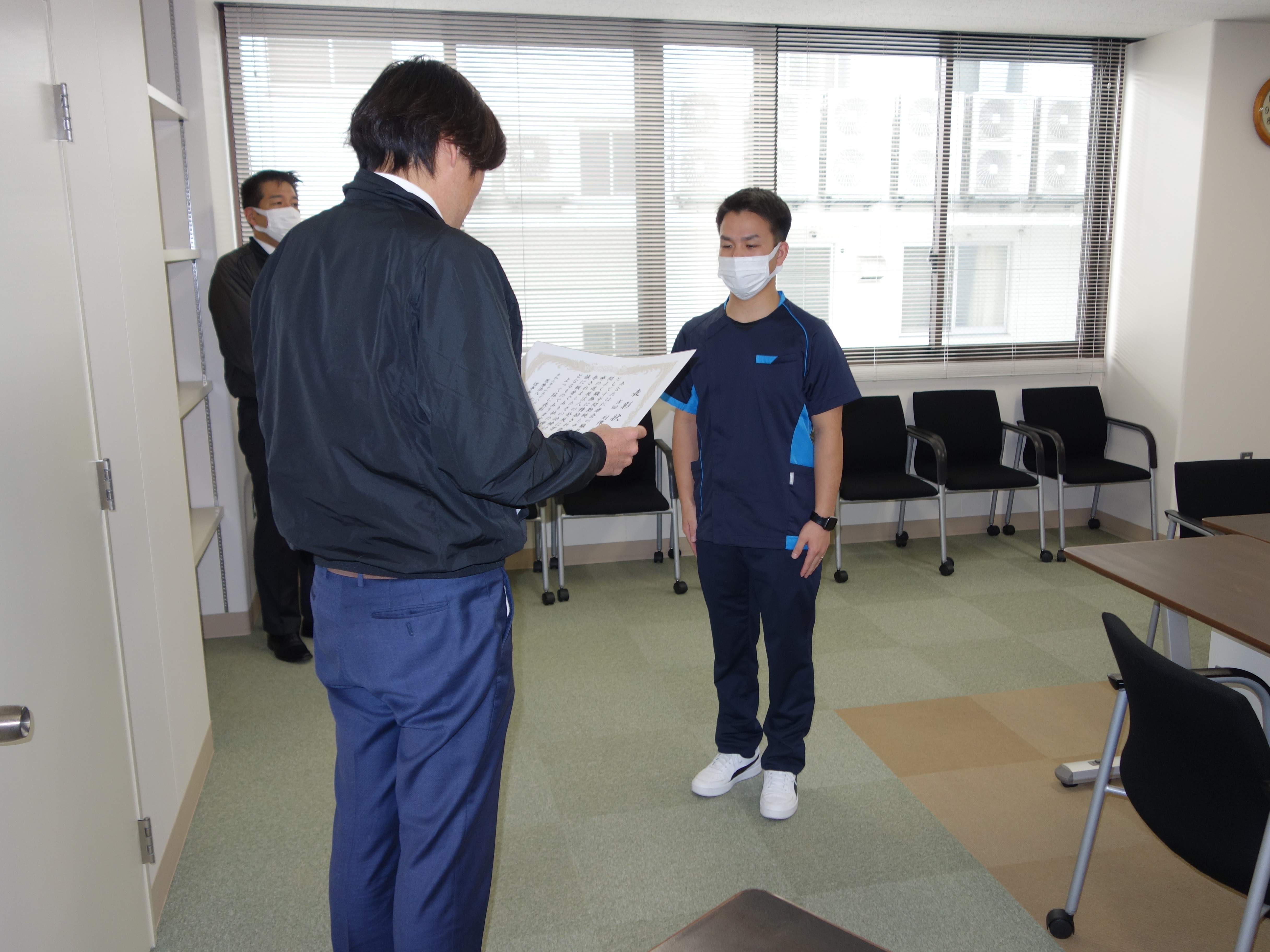 令和7年11月18日(火)令和7年度 医療法人仁康会精神科グループの永年勤続表彰式が小泉病院会議室にて行われました。10年を迎えた職員が対象となり、谷本佳弘副理事長から表彰状と記念品の授与が行われました。また勤続20年を迎えられた職員は、12月に行われる忘年会で表彰を行う予定となっております。今後も多くのスタッフが仁康会で長く勤めたいと思えるよう、福利厚生などを充実させ働きやすい環境作りに努めて参ります。