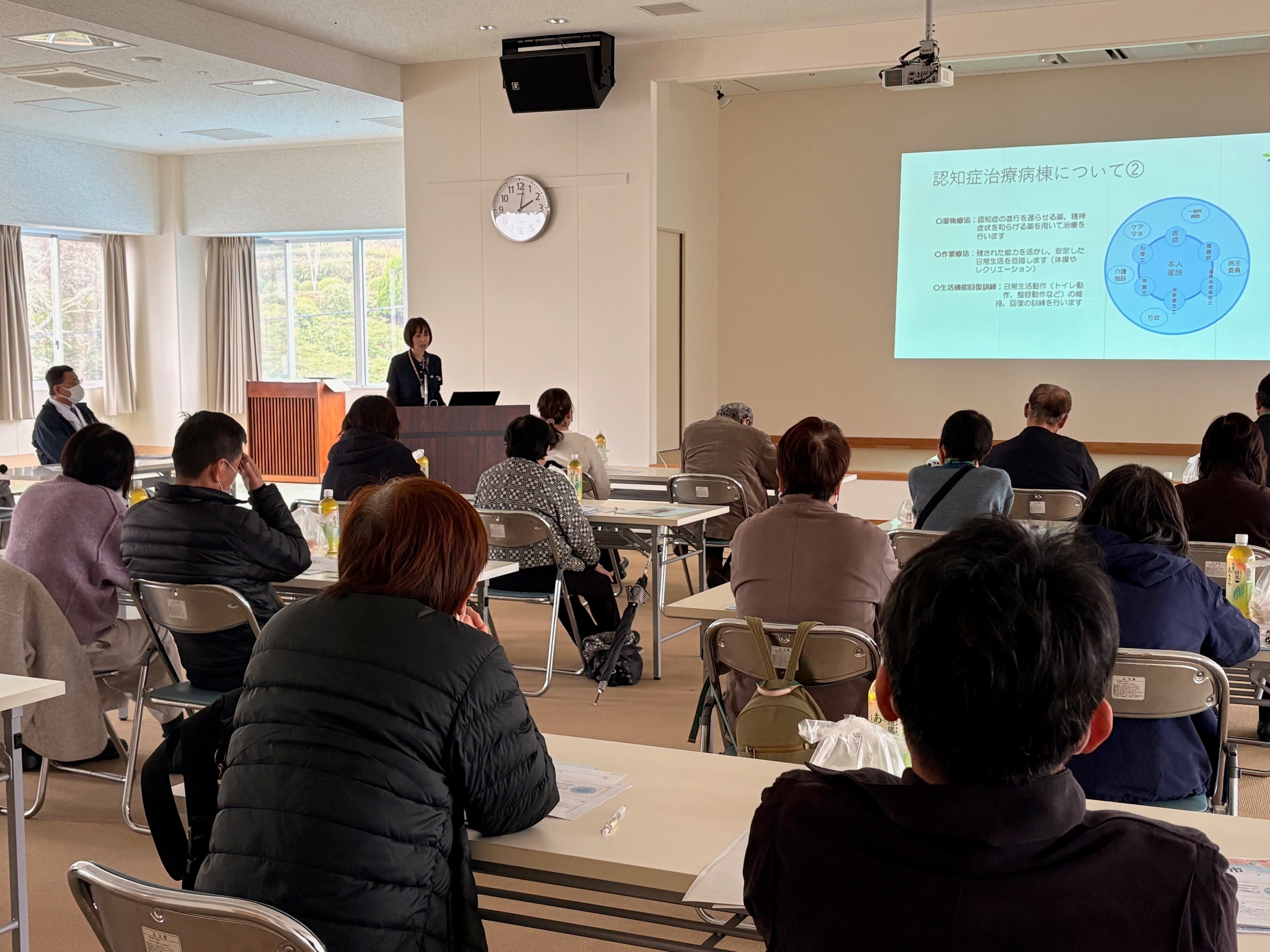 令和8年2月27日(金)世羅町から民生委員の方々が当院へ見学にお越しになられました。認知症疾患支援センター所長の行武医師など病院スタッフが「認知症を含む高齢者への精神科医療支援」と「ひきこもり支援」を中心にお話をさせていただきました。また、施設見学も行い、現在の精神科医療について共有させていただきました。